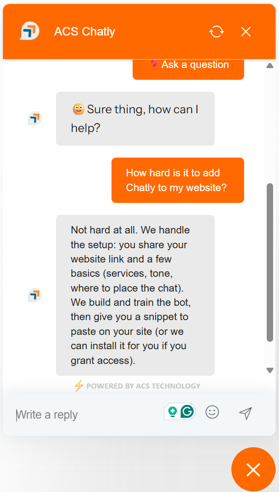 ACS Chatly gives your visitors quick answers, helps guide them to the right services, and captures leads right from your website. One chatbot, created just for your business.